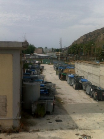 Sono centinaia i contenitori (presumibilmente si tratta di quelli tolti dalle strade dopo il potenziamento della differenziata “porta a porta”) che fanno pessima mostra di sé nei cortili e nel piazzale dell’enorme immobile situato a poca distanza dal cimitero e dal polo artigianale.