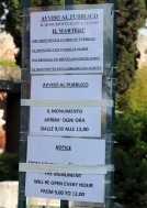 Sui cancelli della struttura un avviso che recita testualmente così: “Il monumento aprirà ogni ora dalle 9 alle 13”.