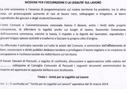 E un contributo importante a questa iniziativa arriva proprio dal Forum dei Giovani, che ha deciso di costituire una “Unità per la Legalità sul Lavoro”, operativa dal prossimo 31 marzo, con richiesta al Consiglio Comunale di approvarne l’apposito regolamento entro il 31 gennaio.
